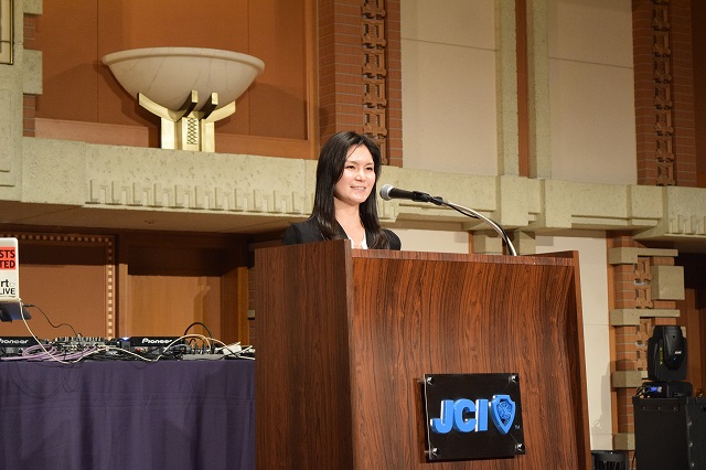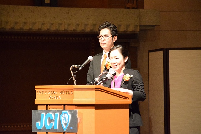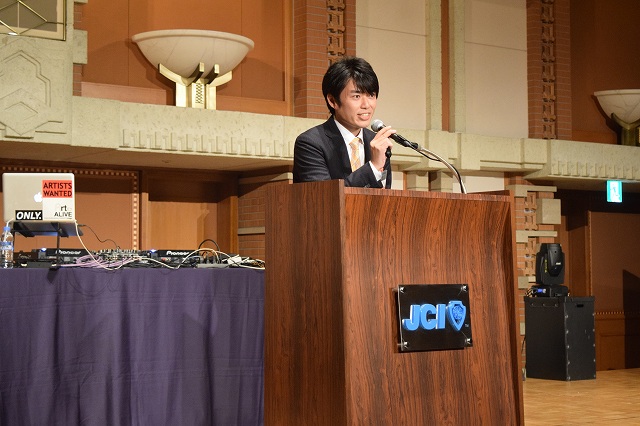 トークセッションの後、MINMIさんと全体集合写真を撮りました。 その後、大阪青年会議所の活動紹介を行い、メンバーによる入会後の心境の変化などについての発表を行いました。
