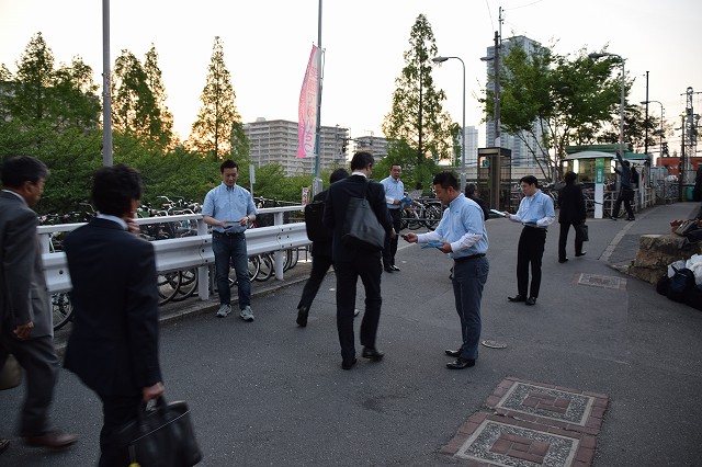 2015年4月27日18時から21時まで、『大阪環状線ジャック』と題して大阪環状線19駅全駅の周辺35か所にて、いわゆる『大阪都構想』に関する冊子の一斉配布を実施しました。