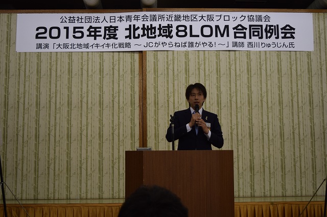 2015年5月11日(月)19時より、不死王閣グリーンホールにおいて『公益社団法人日本青年会議所近畿地区大阪ブロック協議会 2015年度北地域8LOM合同例会』が開催されました。