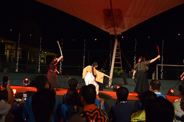 舞台では日本刀の殺陣(たて)が披露され、参加者の多くが舞台上で踊りだすなど大盛会となりました。