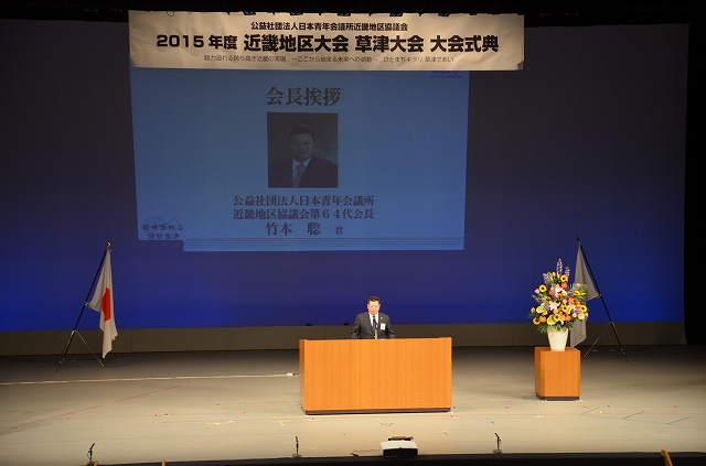 草津JCの吉田理事長の開会宣言に始まり、日本青年会議所近畿地区協議会第64代会長の竹本聡君の挨拶及び来賓者挨拶が行われました。