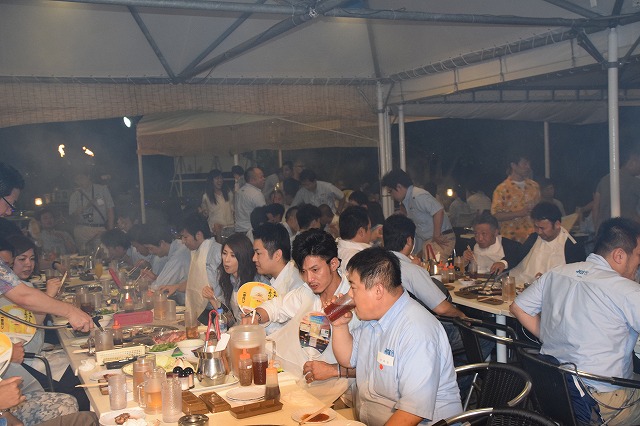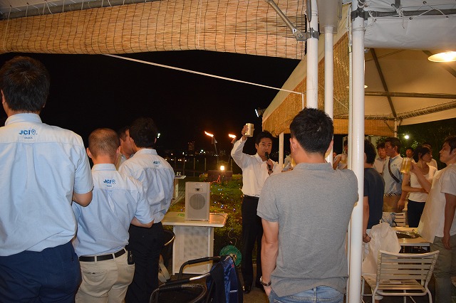 高槻青年会議所のメンバーも参加してプールサイドにて野外BBQが盛大に行われ、近畿地区協議会への出向者を激励しました。