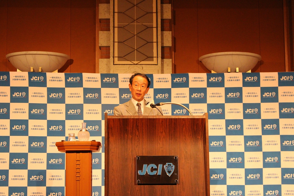 7月度月例会は、講師として、長年厳しい経営状況にあった会社を再建させた経験をもとに大志を抱くことの大切さを説かれている元・東レインターナショナル社長、元・蝶理社長の田中健一氏をお招きしました。