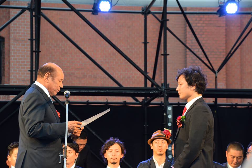 人間力大賞グランプリを受賞したのは東京青年会議所推薦の丸幸弘氏、準グランプリを受賞したのは高松青年会議所推薦の福井大和氏で、それぞれスペシャルプレゼンターの衣笠祥雄氏から表彰状や記念品が授与されました。