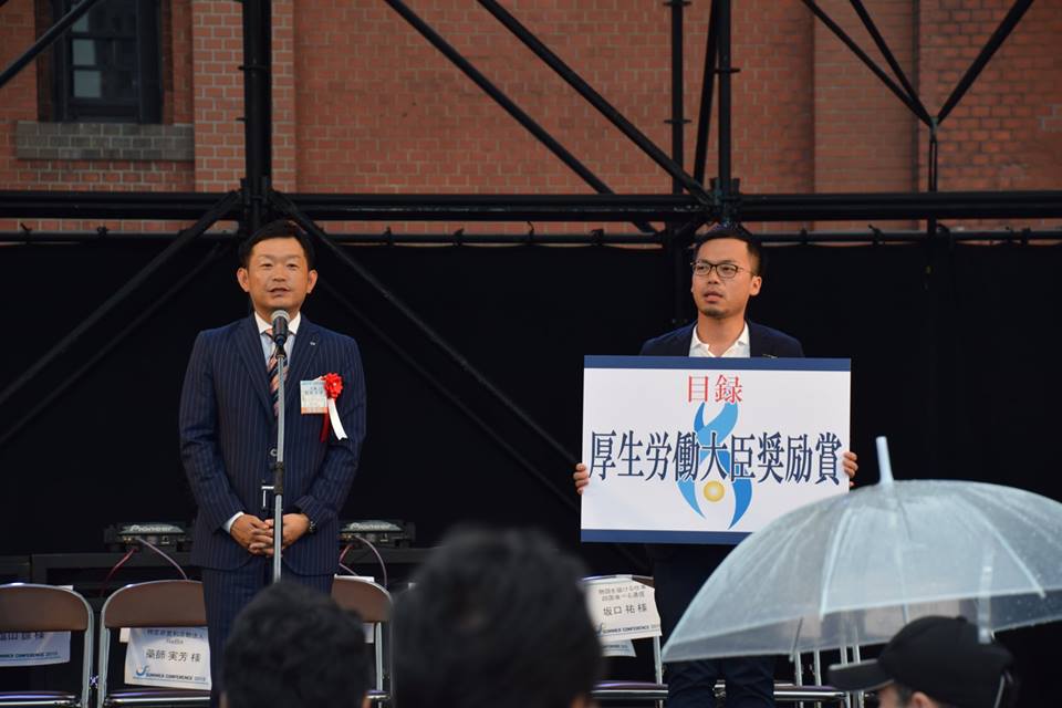 大阪青年会議所から推薦したNPO法人スマイルスタイル代表理事の塩山諒氏は厚生労働大臣奨励賞の受賞が決定しており、別所理事長による紹介スピーチ、ご本人によるプレゼンテーションが行われました。