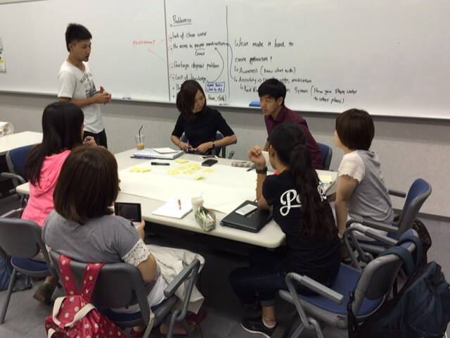 カンボジアのプノンペンでのフィールドワークを終えた日本の学生に海外からの学生も合流し、38名が参加し行われたグループワークでは、貧困問題について6つのグループに分かれて話し合いました。