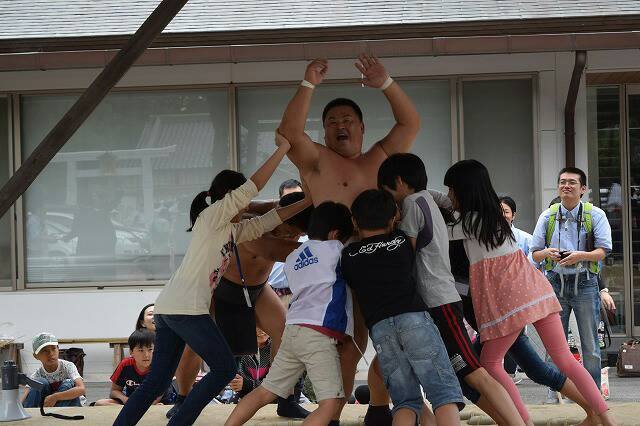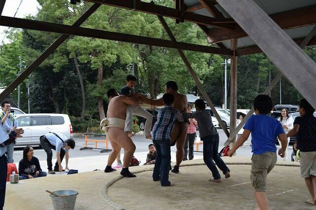 午後からは英会話を勉強した後、相撲稽古体験・五大力・重軽石と日本文化を体験してもらいました。