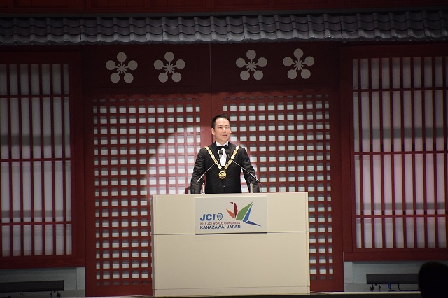 柴田剛介日本JC会頭から、全世界から参加しているJCメンバーを歓迎し、参加者とともにJC運動100周年にふさわしい世界会議にしたいとのご挨拶がありました。