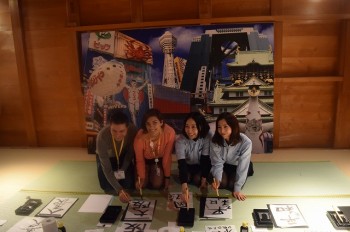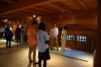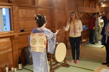 五十間長屋内ではお茶屋遊び体験や書道体験、芸妓さんとの記念撮影が行われました。