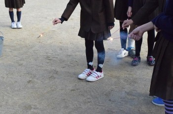 屋外では手持ち花火と打ち上げ花火の体験を行い、生徒達も大いに盛り上がっていました。