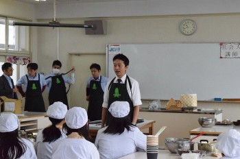 2回目は、大阪昆布商工業協同組合の池上先輩による授業で、テーマは「本物のお味噌汁を作ろう!味の決め手はダシが決め手!」です。