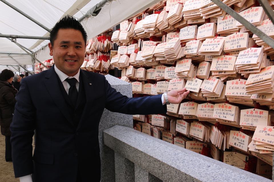 大阪青年会議所の2016年度の理事会構成メンバーが揃って本年の目標成就を祈願し、城阪千太郎理事長が絵馬の奉納をさせていただきました。