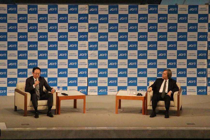 第2部では田坂広志氏と岡田武史氏による対談を行いました。多くの大阪青年会議所メンバーが、熱心に耳を傾けました。
