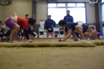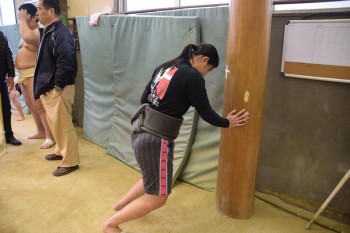 練習風景も見学させて頂き真剣なぶつかり稽古が目の前で行われました!!