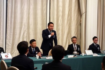 とのお話があり、4月19日には現地より希望のあった飲料水を300ケースを、また併行して、支援金受付を開始しているとの報告がありました。続いて4月からは新入会委員が290名加わり、現役メンバー1,198名でのスタートになりました。わんぱく相撲大阪市大会を含め今後の事業に多くの新人メンバーが参加したくなる事業構築を一丸となって進めていきましょうとの挨拶がありました。