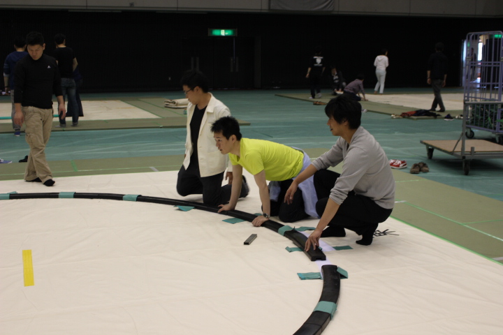 4月30日13時からエディオンアリーナOSAKA(大阪府立体育会館)にて明日の第35回大阪市長杯 わんぱく相撲大阪市大会の前日準備がありました。