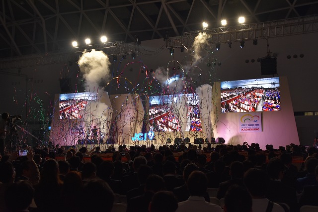 各国会頭をはじめとする出席者が登場するたびに歓声が上がり、山本樹育日本JC会頭、波多野まみAPDC議長、小山良磨JCI副会頭も登場しました。