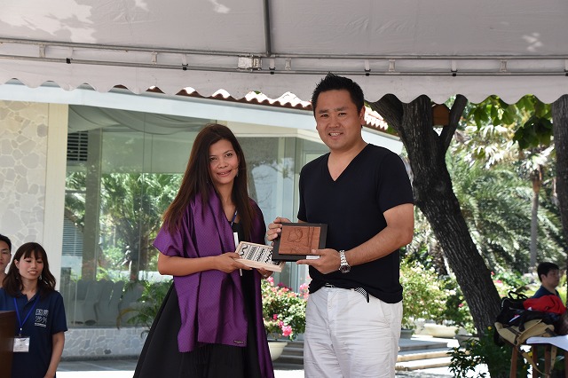 晴天の中、城阪理事長のご挨拶から始まり、シスターJCの台北JCよりジュアン・ズ・イー理事長、ヴィクトリアJCよりジン リー理事長、ウランバートルJCよりチミッドスレン・チョイグンセン理事長、プノンペンJCよりスオンチュラ理事長にご挨拶頂き、記念品の交換も行いました。