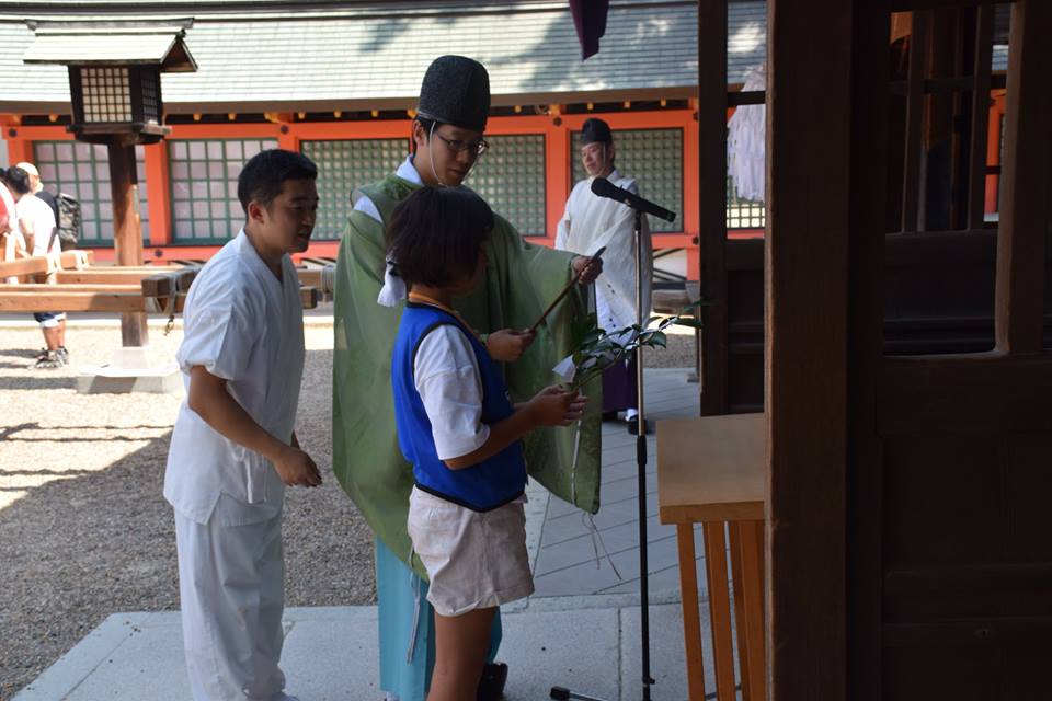 その後、住吉大社に移動し、吉祥殿にて本日のオリエンテーションを受け、みんなで祈祷式に臨みました。