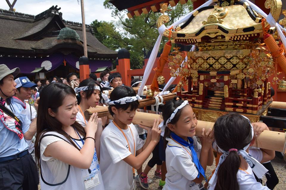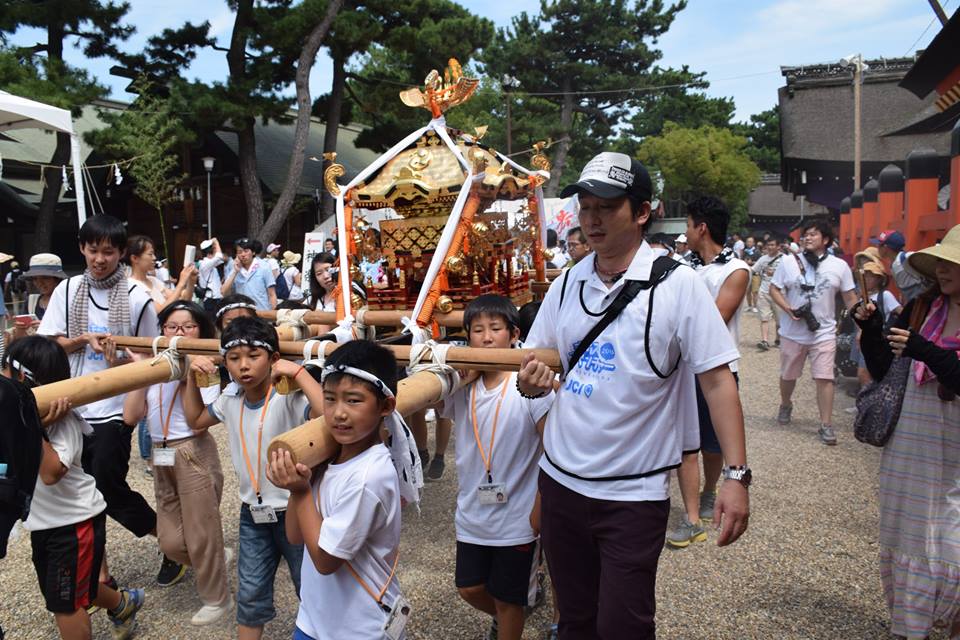 境内を抜け、住吉公園にて休憩。そのまま商店街を巡行し、再度住吉公園にて休憩。そこで保護者の方を含めた全員で記念撮影を行いました。