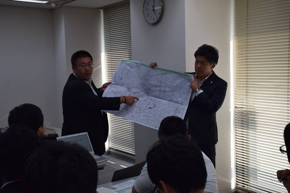 その後、当日の全体の流れや注意事項などの説明の後、川沿警備、救護、インフォメーション、荷捌きなどの担当に別れより具体的に説明がございました。