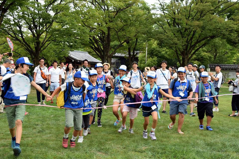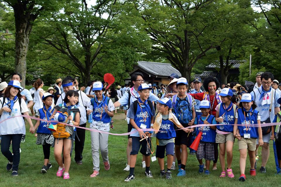 ゴールは大阪城西の丸庭園でした。保護者の皆様、JCメンバーに迎えられ、歓声の中ゴールしました。ゴールライン直前でとどまり横一列に並び手を繋いで皆で同時にゴールするチームや、新しく仲間と先を競い走ってゴールに飛び込んだり、疲れ果ててファシリテーターに支えられながらのゴールなど様々でした。印象的だったのは一度ゴールしたにも関わらず疲れ果てて歩くことしかできない仲間を迎えに戻る子どもたちがいたことです。