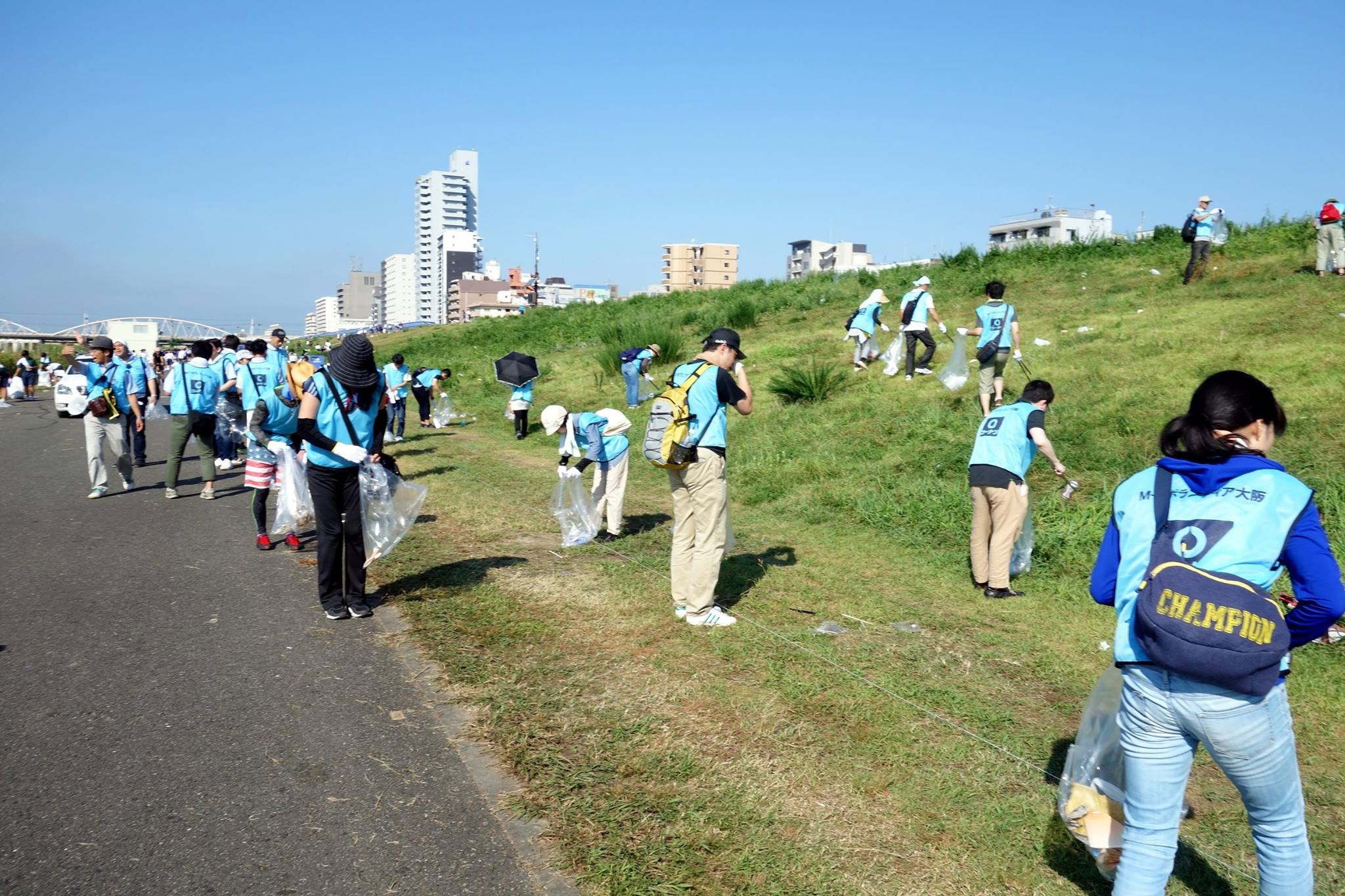 第28なにわ淀川花火大会が無事終わりましたが、開催前よりも河川敷を綺麗にしようと多くのボランティアの皆様にご参加いただき清掃しました。