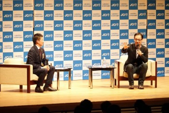 10月8日(土)13時30分より広島国際会議場フェニックスホールにて「心」ある国 日本フォーラムが開催致しました。 次世代グループ担当常任理事須山裕史君及び地域グループ担当常任理事浦崇典君より本フォーラムについての趣旨説明がありました。 第1部では、経済ジャーナリスト渋谷和宏氏と副会頭野元一臣君による対談が行われました。 テーマは「心」ある国 日本を創造していくにあたり、新たな資本主義の確立、第4次産業革命の可能性、ソーシャルイノベーションの3つでした。