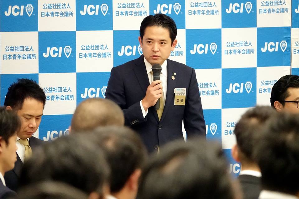 公益社団法人日本青年会議所会頭、山本樹育君のご挨拶がありました。