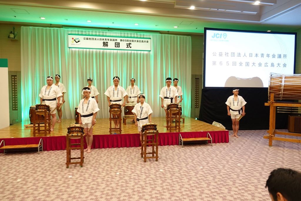 一般社団法人広島青年会議所の太鼓同好会、和平機縁太鼓の力強い演奏で始まり、
