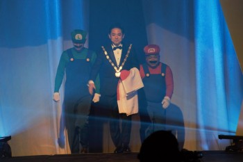 雄大なオペラのオープニングアクトでスタートしたセレモニーは、各国NOM会頭の紹介が行われました。日本JC会頭の山本樹育会頭は、マリオとルイージを引き連れての登場でした!