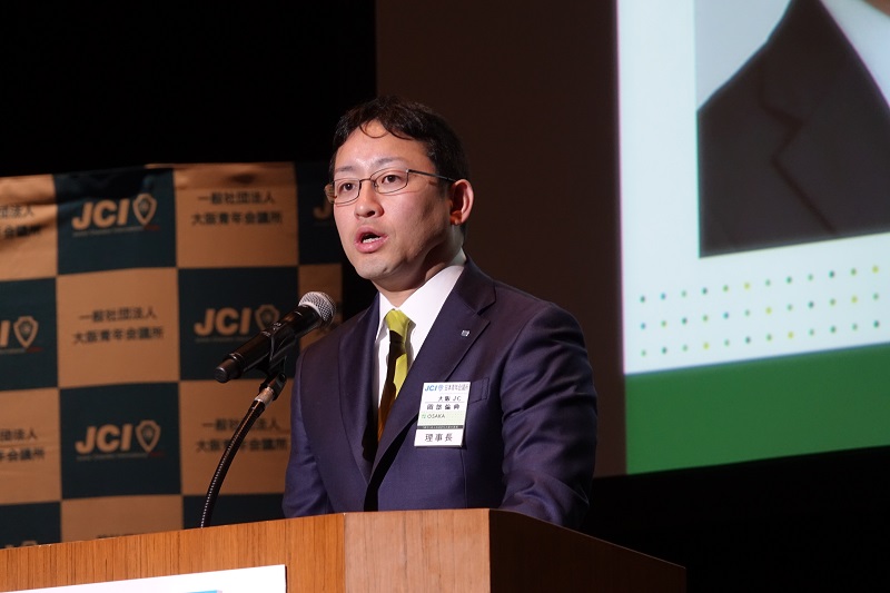 今年も200名を超える新たな仲間が入会しました!皆様、少々緊張しながら会場に入ります。岡部理事長の挨拶から始まり、吉村洋文大阪市長から、ビデオレターにて大阪市と大阪青年会議所がタッグを組んで大阪のまちを創っていこうとのご挨拶をいただきました。