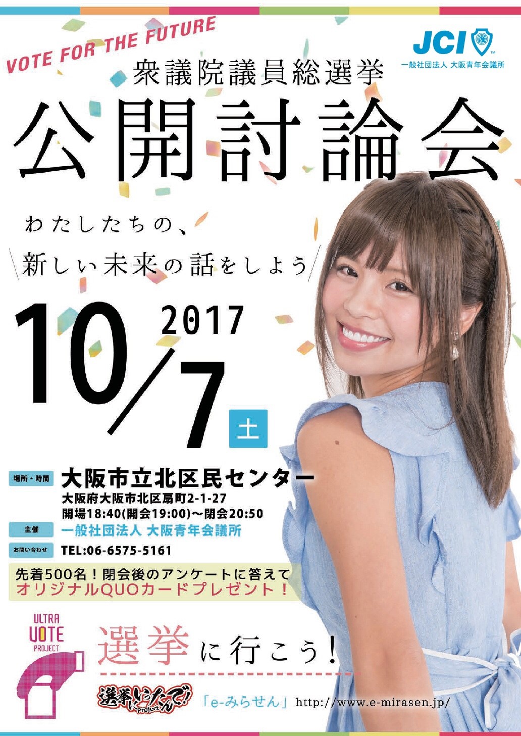一般社団法人 大阪青年会議所では、有権者の方々の政治への参画意識を高めるため、公開討論会を開催致しました!