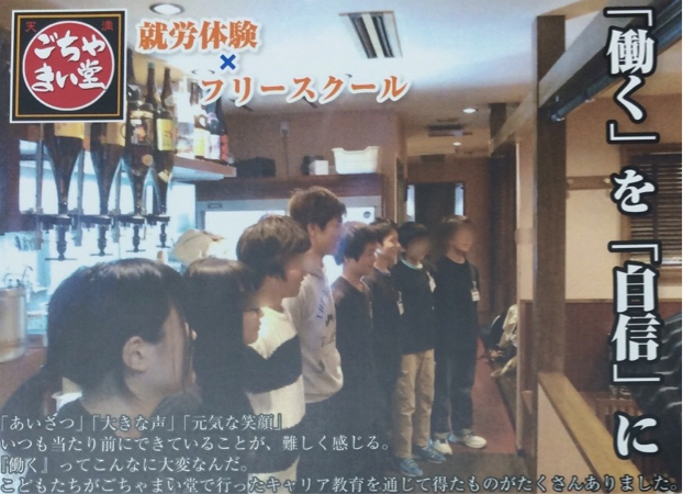 大阪のフリースクールに在籍する小学生から高校生の子供たちに飲食店舗「ごちゃまい堂」にてさまざまな就労体験をしていただきます。
