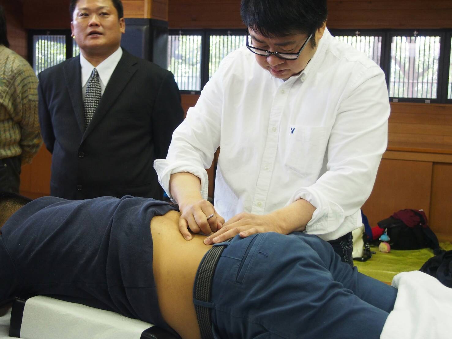 会場では同時に並行して朝井会長がお世話になってる鍼のデモンストレーションも行われました。