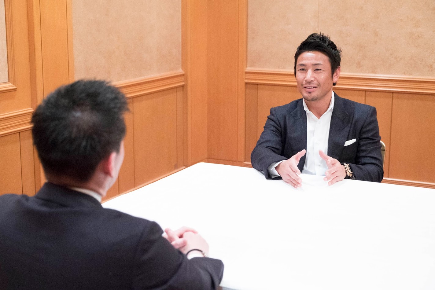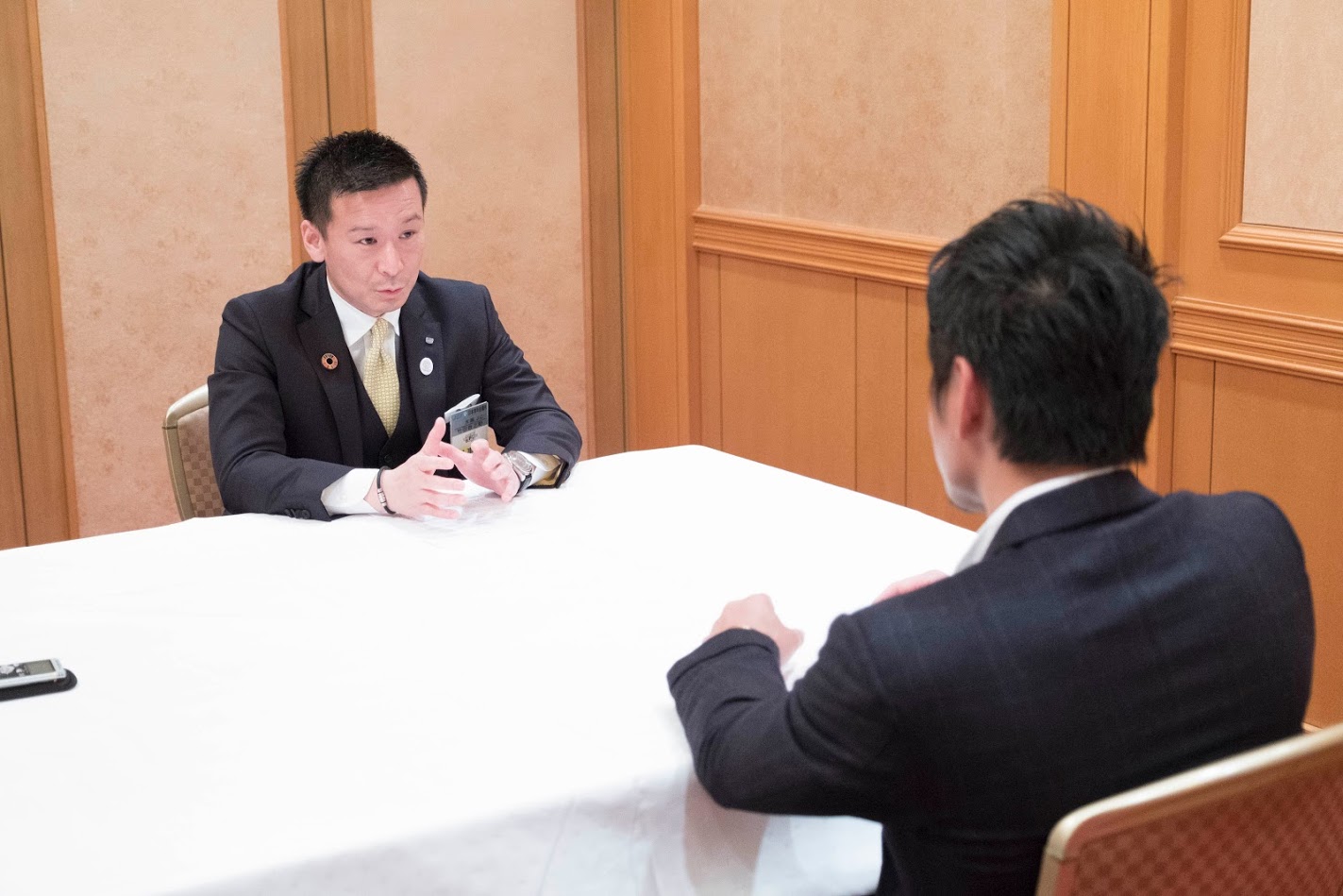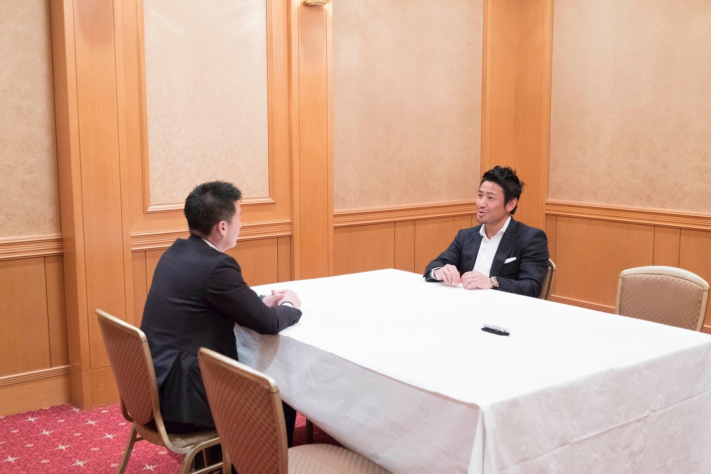 帝国ホテルにて元K1王者の魔娑斗さんと理事長 竹田哲之助君の対談が行われました。