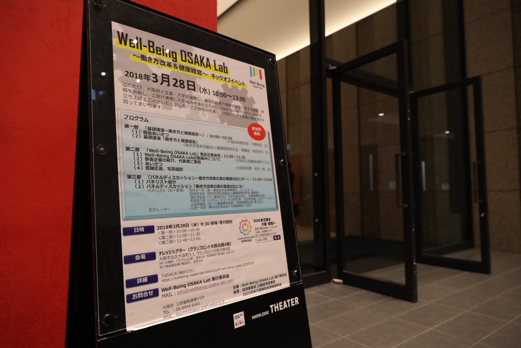 「Well-Being OSAKA Lab」とは、大阪府と企業・大学が連携し、働き方改革や健康経営等に関する課題・情報を共有し、健康に関する様々な課題解決を目指すプロジェクトです。