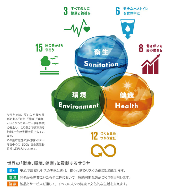2015年9月、国連サミットでSDGs・持続可能な開発目標が採択されたのをきっかけに各国でSDGsの取り組みが加速。サラヤは「世界の衛生・環境・健康に貢献する」ことを事業目標にグローバルネットワークを構築し、SDGs達成にむけてのソーシャル事業をいち早く実践してきた企業です。