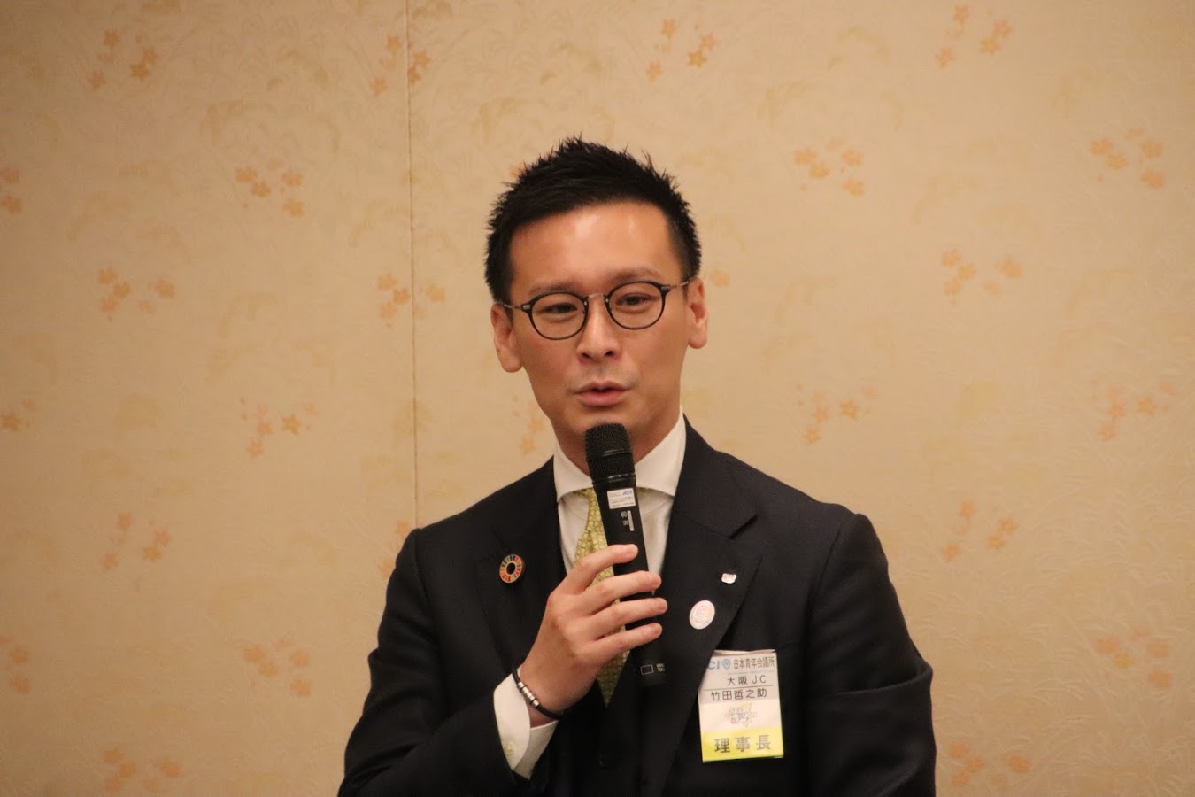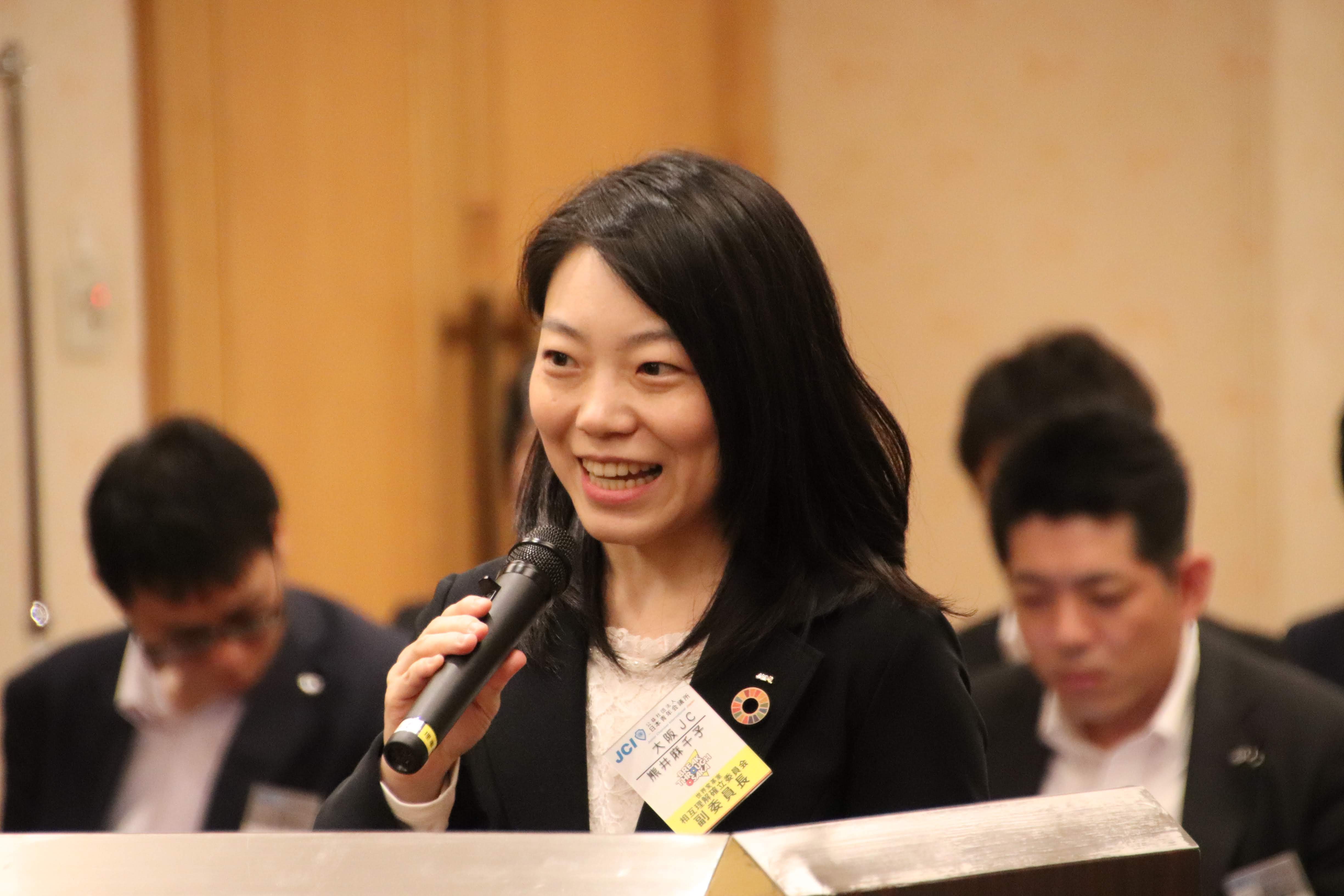 最後に、出向者報告では、大阪青年会議所の相互理解確立委員会から日本青年会議所の公益資本主義推進委員会へ出向している熊井麻千子君から、先日に行われたASPAC参加御礼とともに、サマーコンファレンスで公益資本主義を推進している方を呼びフォーラムを開催するとのPRを頂きました。