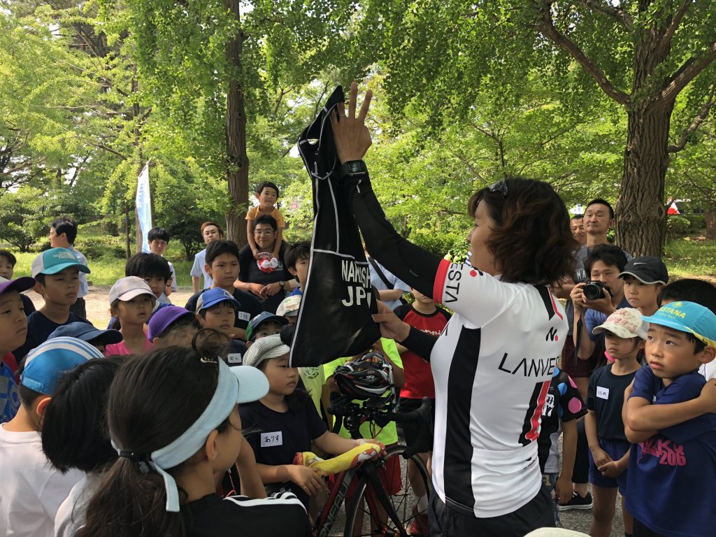 2004年アテネ五輪トライアスロン競技日本代表の山脇真知子氏を講師としてお迎えし、ご自身の体験した五輪での経験談や、競技の面白さを参加してくれた子どもたちに伝えていただきました。
