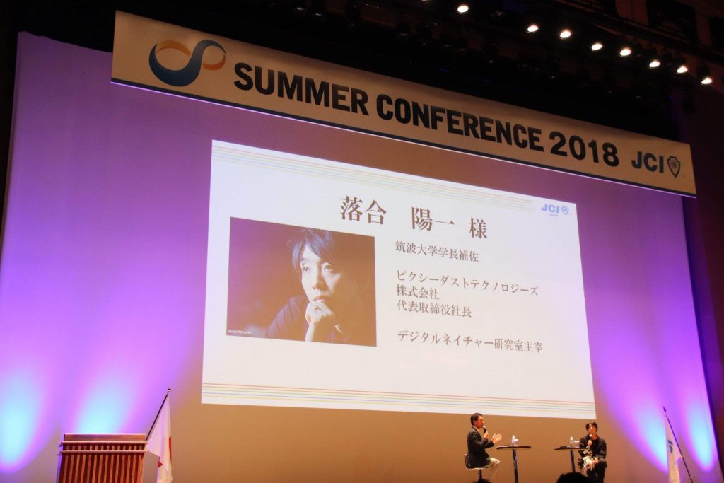 13時00分から「地方創生フォーラム」が開催され、落合陽一氏、日本JC副会頭鎌田長明君との対談では、クリエイティブな人材の育成方法、SDGs、青年会議所に期待することなどをテーマに話し合われました。