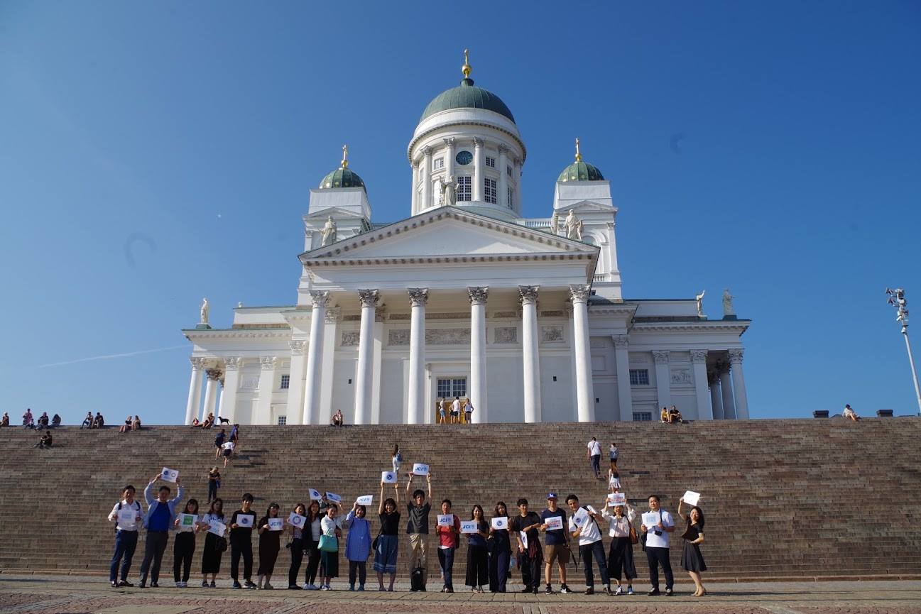 その後、空港からバスに乗り、ヘルシンキ大聖堂へ。これからスタートする研修の束の間の観光を楽しみました。バスの中では矢本委員長より、PCYの歴史とプログラム趣旨、そして注意事項についての説明がありました。ガイドは日本人とフィンランド人のハーフのコッコさんが勤めてくださいました。