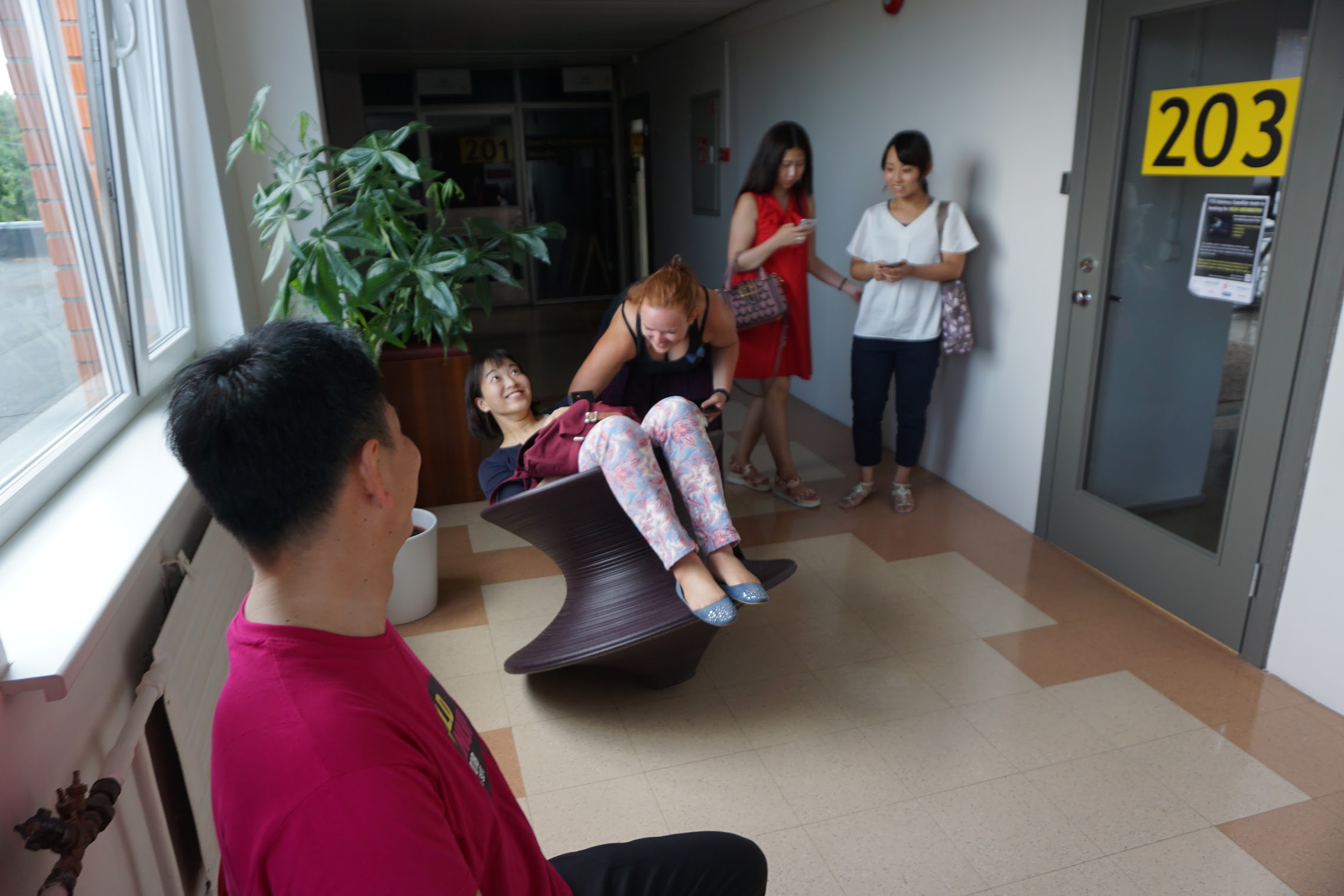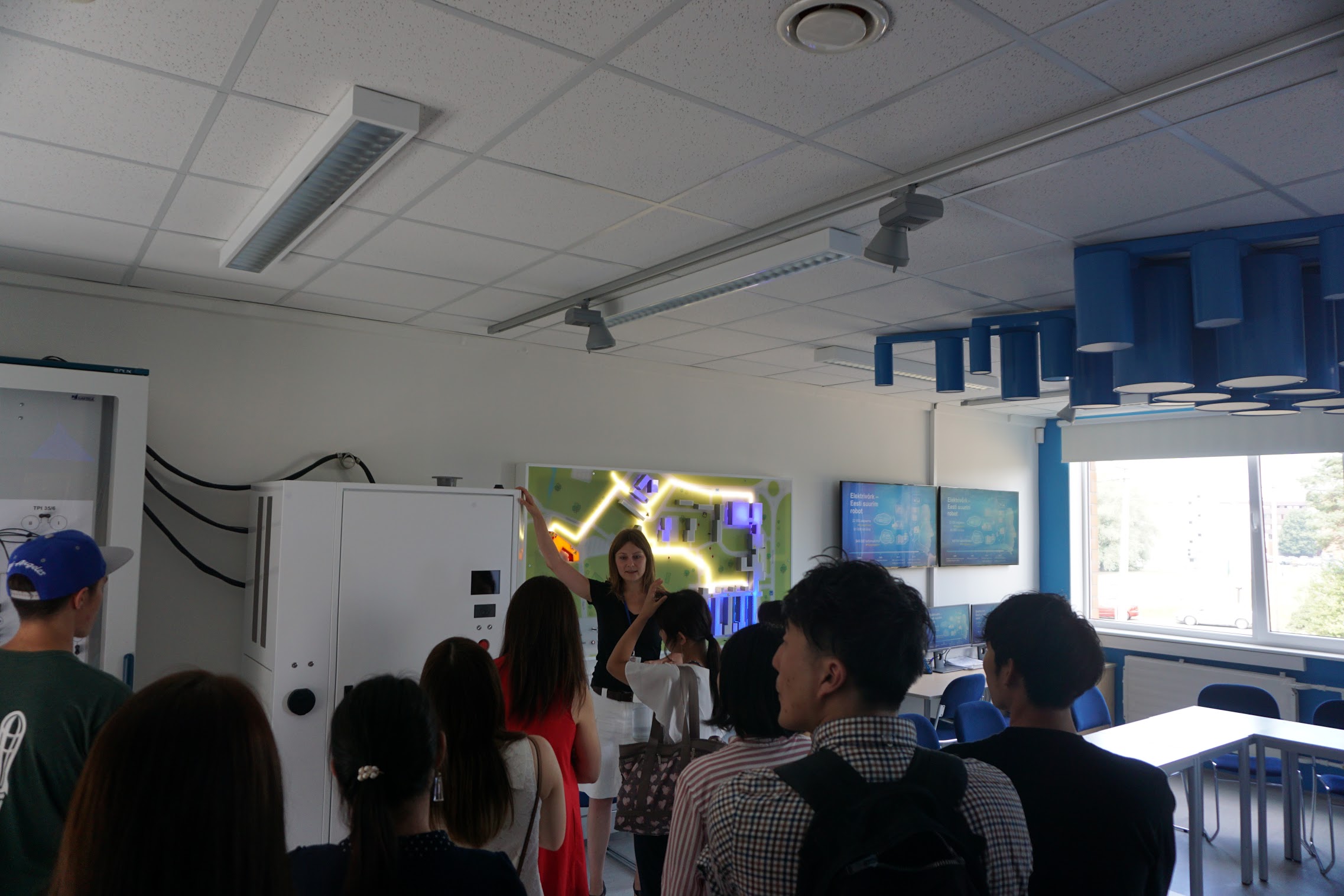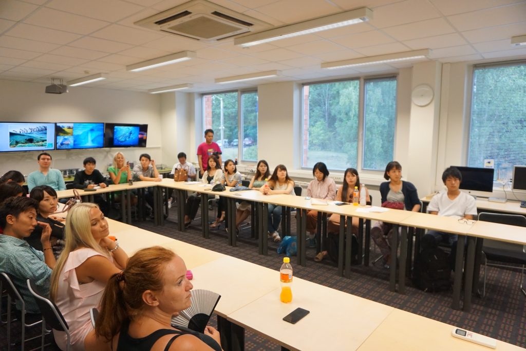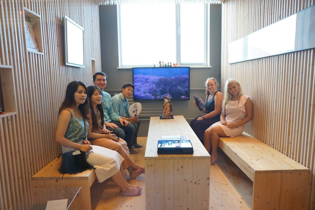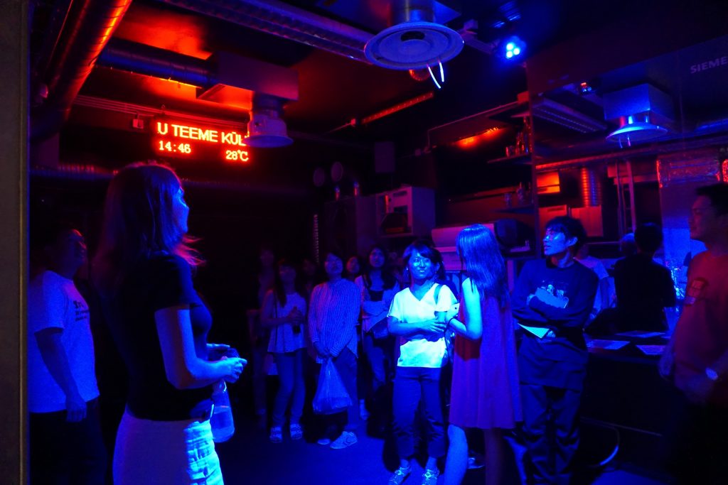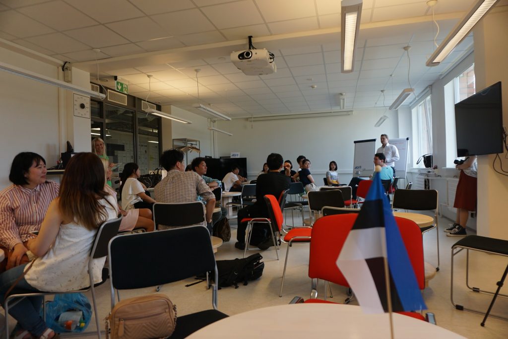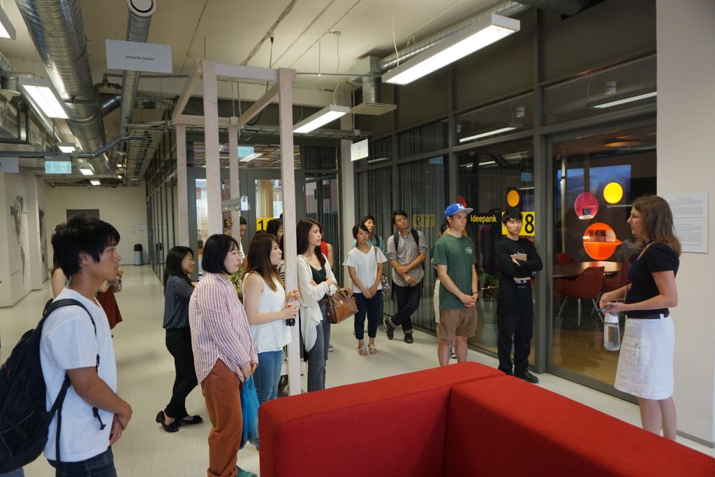 Mectoryタリン工科大学で、研究室を見て回りました。こちらは様々な研究テーマに合わせた部屋があり、日本ルーム、アメリカスペース、インドルーム、オーストラリアルーム、ドイツルームなど国の文化を参考にしたもの、サウナとプール、ダンスホールの研究室、エネルギー研究室など用途に合わせた研究室がありました。また、多くの企業の協賛を受けており、マリメッコの部屋などもあります。見学し、実際のものをみて体験しました。