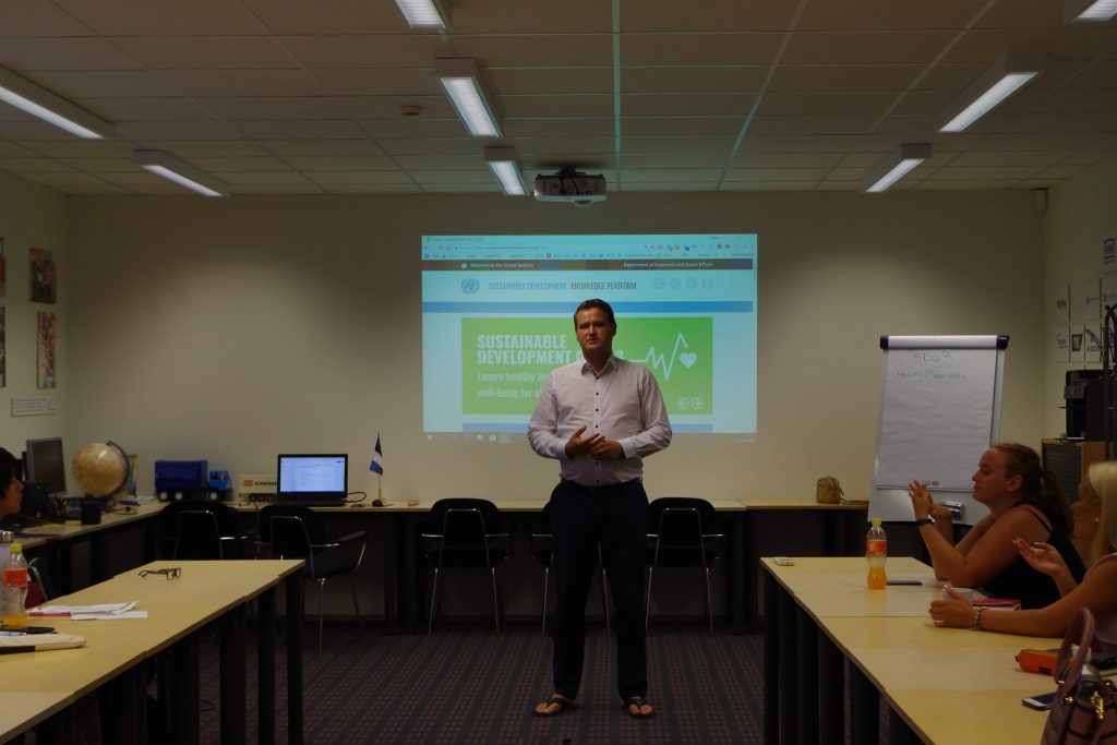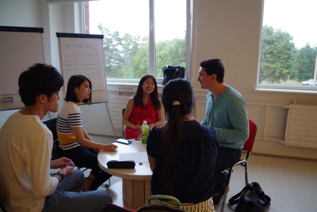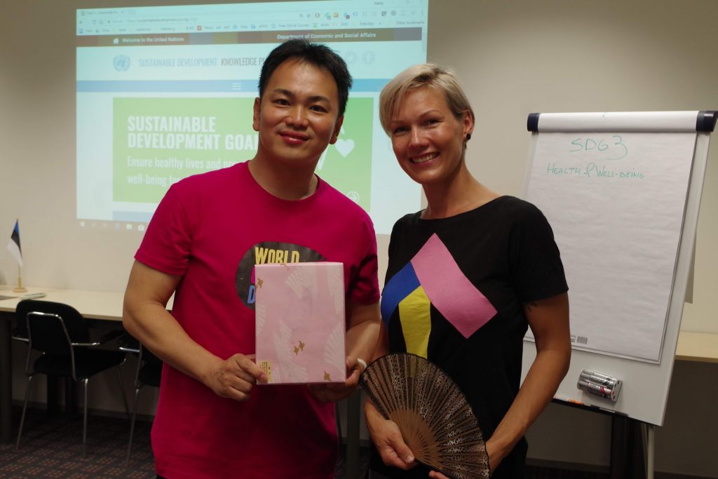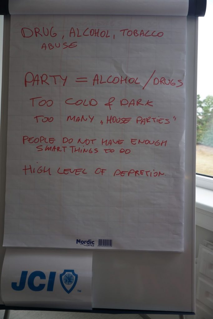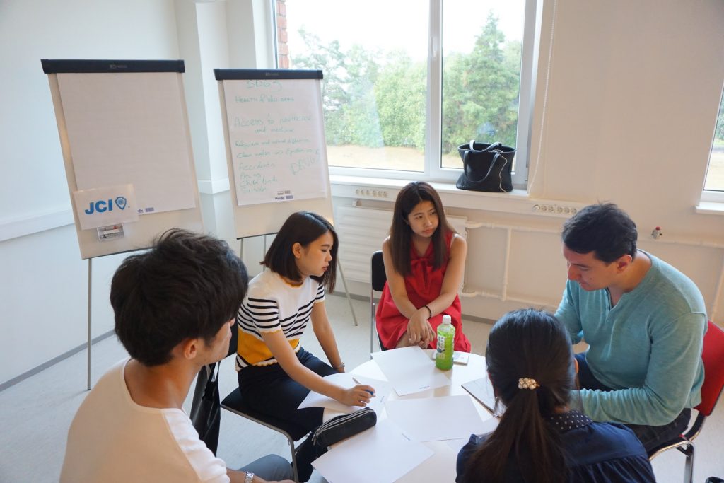 そして、JCIエストニア会頭ヘンリーにファシリティをしていただき、エストニアの学生と日本の学生が混じって、SDGsゴール3に関して日本とエストニア双方の国の問題に関してディスカッションとシェアを行いました。