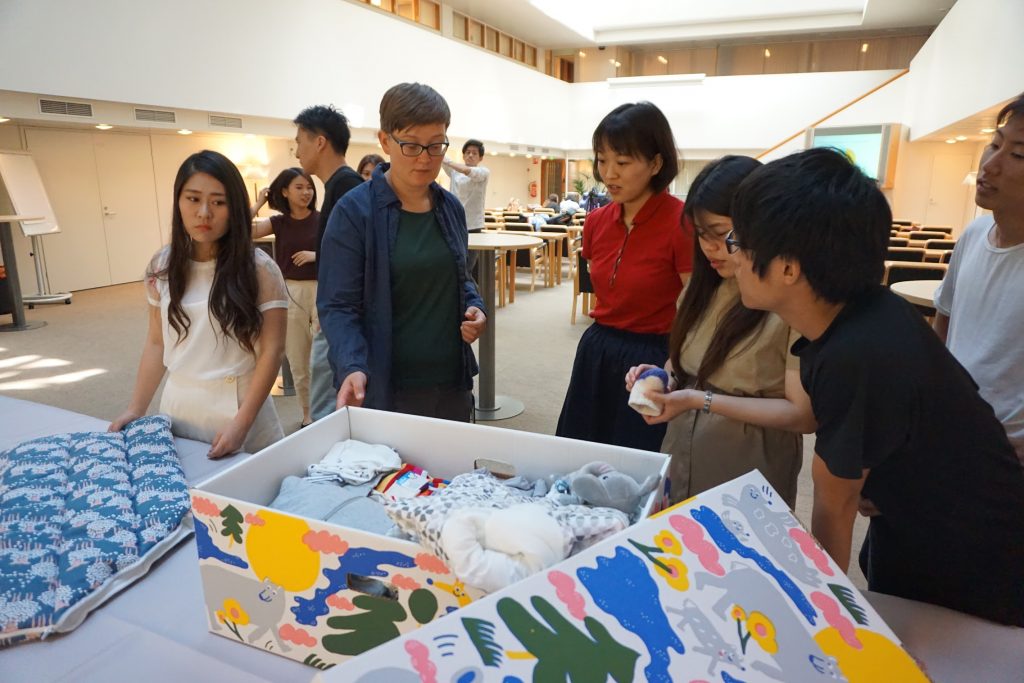 4日目は、フィンランドの社会保険庁KELAへ訪問しました。フィンランドの社会保険庁は、年金制度や社会保険制度を統括しており、1937年からの歴史を振り返り、子供が生まれた際にもらえるマタニティパッケージを実際に見ながらKELAの職員の方と意見交換をしました。