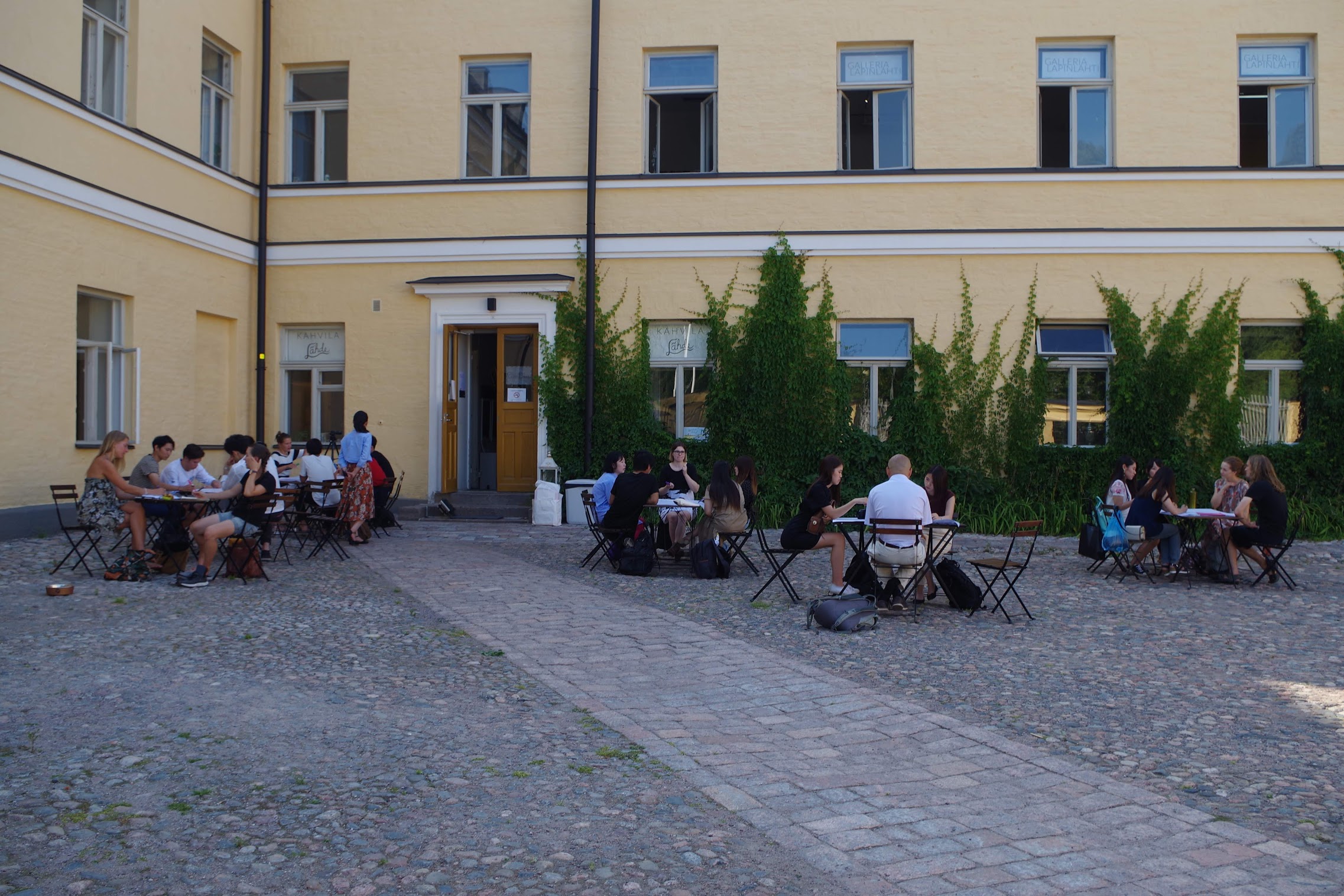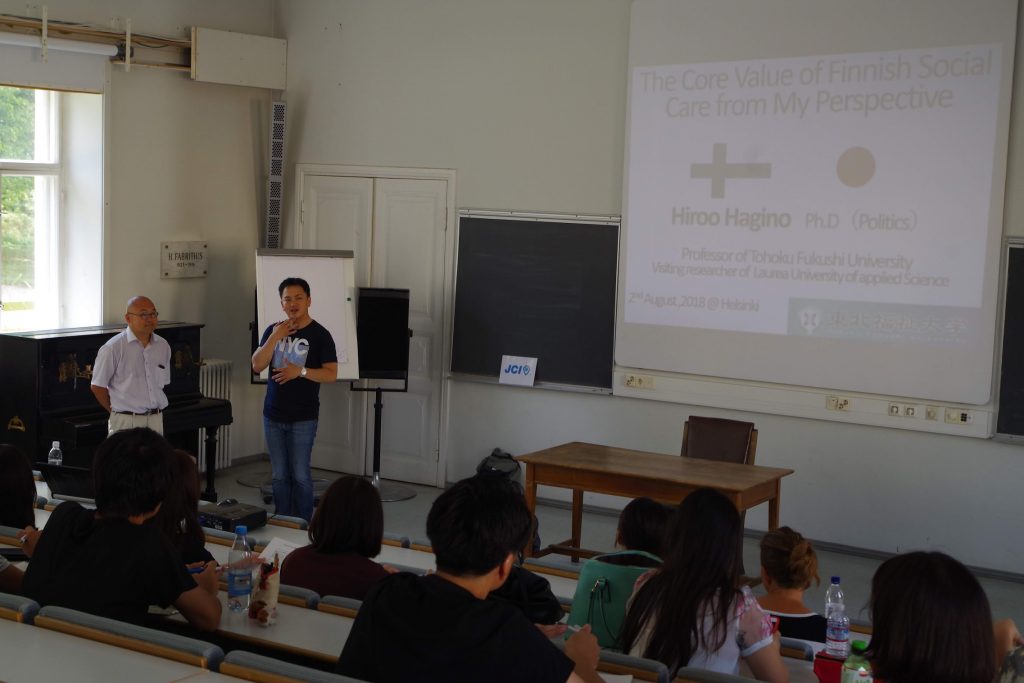 LAPINLAHTIは、元精神病院で、現在はそのたたずまいを残すものとなっています。かつての精神病院は現在はMENTAL MUSEUMとして保存されており、訪問したのち、東北福祉大学からラウレア応用科学大学に交換でヘルシンキに来られている萩野先生に、日本とフィンランドの大学及び福祉事情に関する講義を受けました。その後、5グループに分かれてテーマを分けてワールドカフェの手法を用いて、ワークショップを行いました。