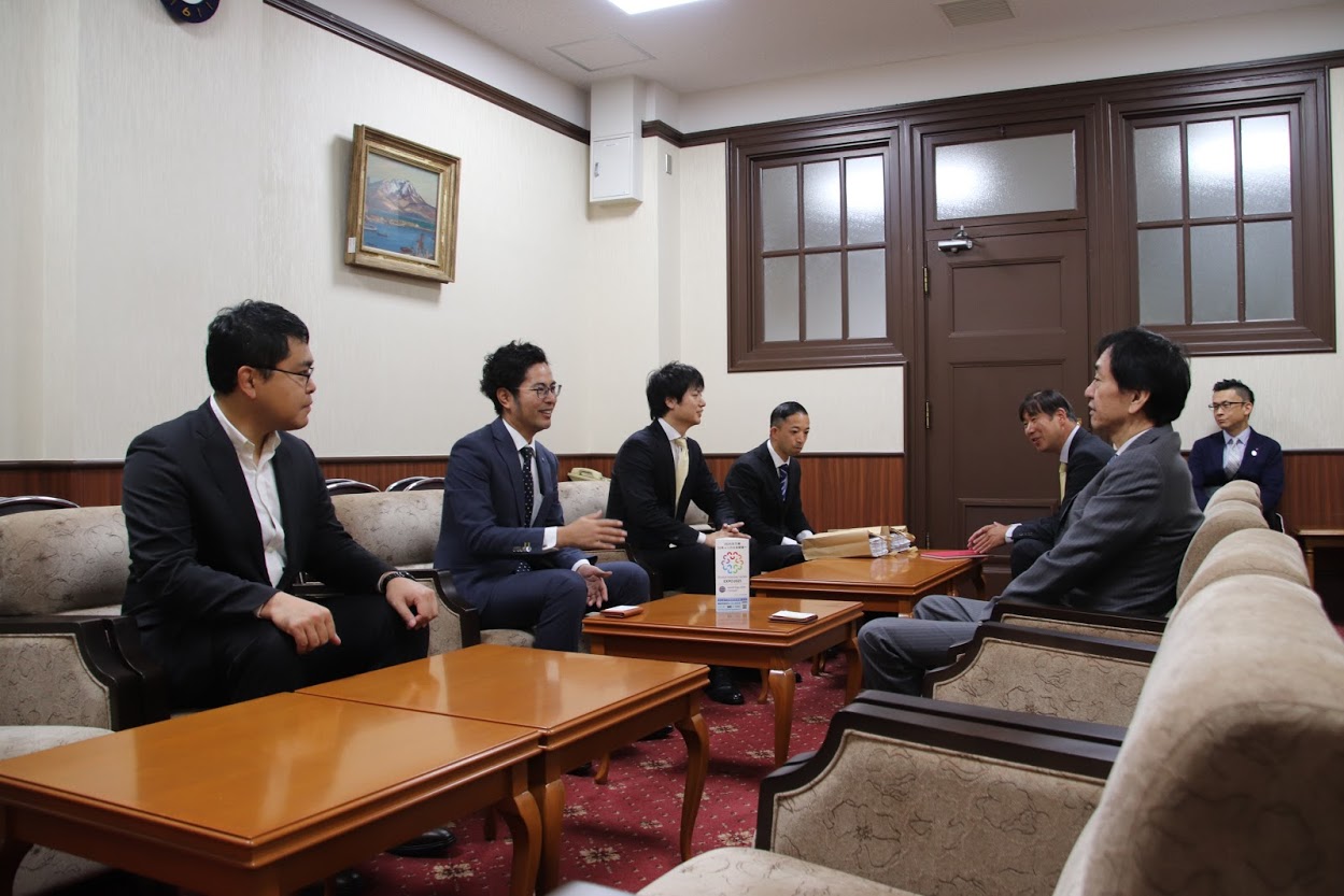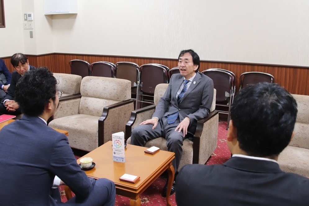 新井副知事からは、感謝のお言葉を頂くとともに、大阪で開催が決定した後においても、開催までの準備が重要であり、中小企業の経営者が多く在籍している大阪青年会議所のような青年経済人の力が必要です!と、共に大阪の発展のために連携協力していこうというお言葉を頂きました。