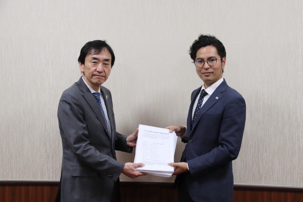 11月5日(火)に大阪府庁を訪問し、副理事長 吉井雅俊君より新井純 副知事に5万筆の署名を提出しました。