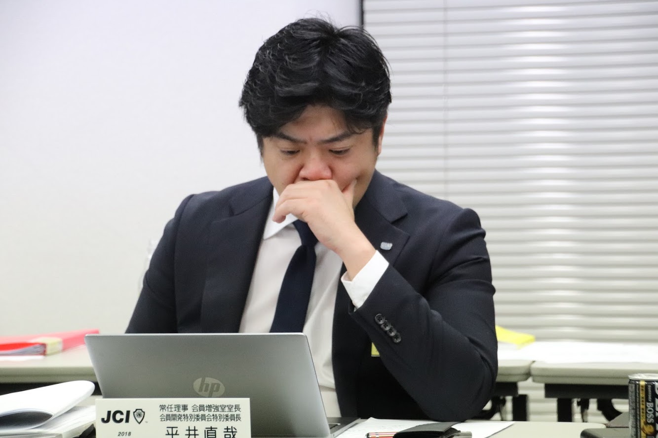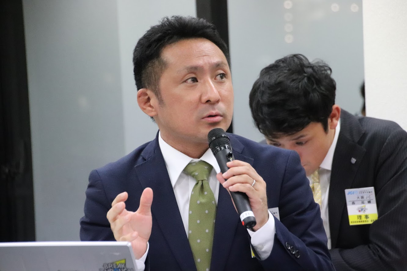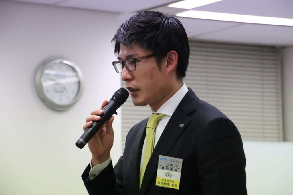 最後に出向者報告では、公益社団法人 日本青年会議所 総務委員長として出向している常任理事 村尾 尚太郎君、公益社団法人 日本青年会議所 近畿地区協議会 会担当副会長として出向している常任理事 島田 直樹君より直近の活動報告と最終12月までの活動予定について報告あり、滞りなく理事会が閉会されました。