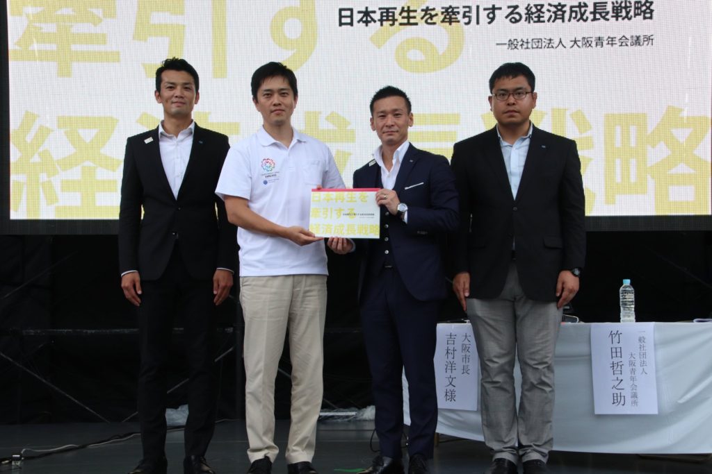本年度は、BREAK THROUGH OSAKAをテーマに、日本再生を牽引する民間主導の経済成長の実現、子どもの生きる力を育む生涯活躍社会の実現、人類に真の進歩と調和をもたらす突き抜けた人材の育成という3つの大きな政策を掲げ活動をして参りました。